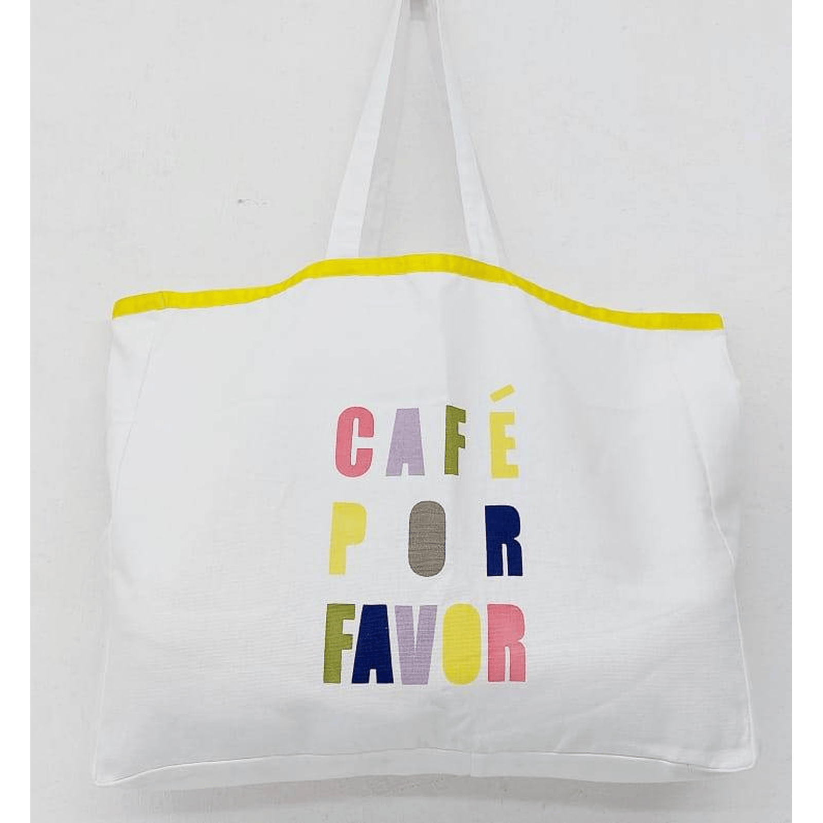 Bring A Fun And Stylish Vibe To Your Everyday Routine With This ‘Café Por Favor’ Printed Tote Bag. The Bag Features Bold, Multicolored Typography On A Crisp White Base, Giving It A Bright And Cheerful Look. Designed With Durable Fabric And A Wide, Spacious Interior, It’S Perfect For Carrying Books, Groceries, Travel Essentials, Or Daily Items With Ease.
