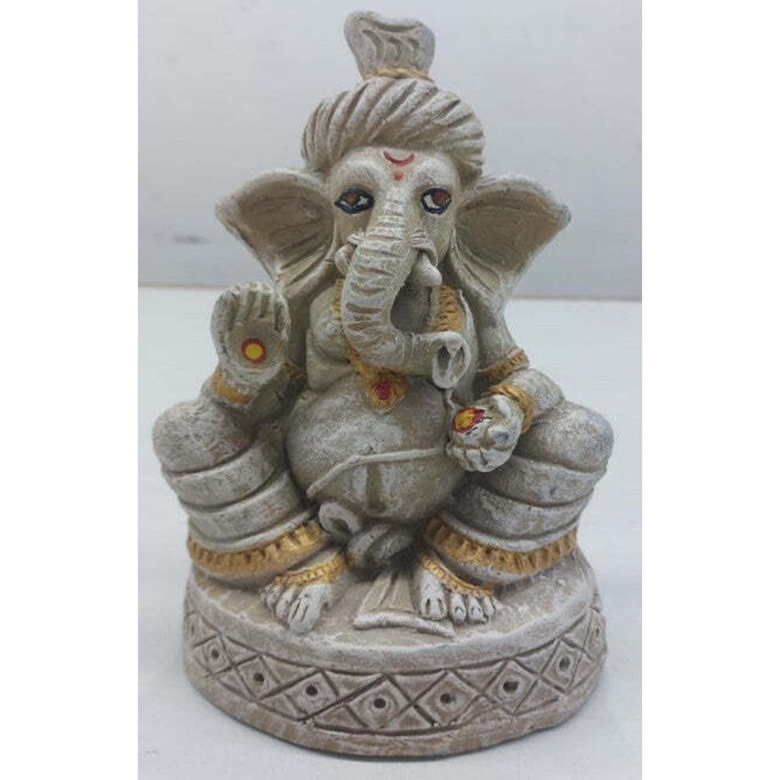 Elevate Your Home Décor With This Beautifully Handcrafted Ganesha Idol, Featuring An Antique White Finish And Intricate Detailing. Designed In A Traditional Seated Pose, The Idol Displays Expressive Eyes, A Gracefully Curved Trunk, And A Blessing Hand Symbolizing Protection And Positivity. The Ornate Crown, Jewelry Accents, And Delicately Painted Red–Yellow Highlights Add A Touch Of Richness To The Rustic Texture.