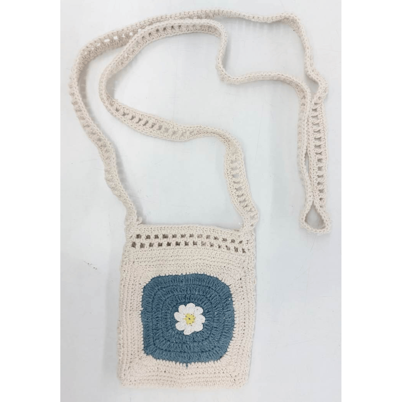 Add A Touch Of Handmade Charm To Your Everyday Style With This Beautifully Crafted Crochet Crossbody Bag. Made From Soft, Durable 100% Cotton Yarn, This Compact Bag Showcases A Charming Floral Motif At The Center—Featuring A Blue Base With A Delicate White Daisy Design.